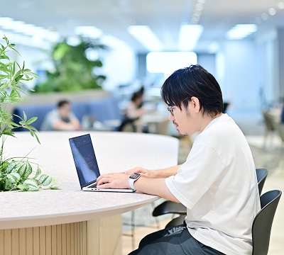 オンライン会議システムなどITツールの活用によるコミュニケーションを促進し、社員の約8割程度が常時在宅勤務を行っております。
