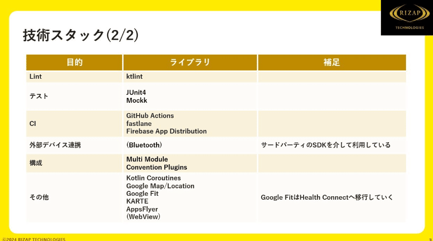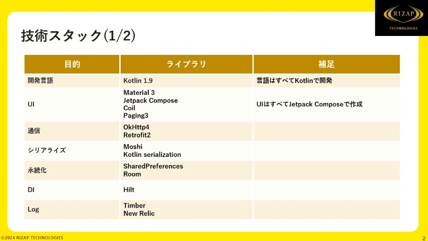 まずは技術スタックの紹介 1ページ目です。